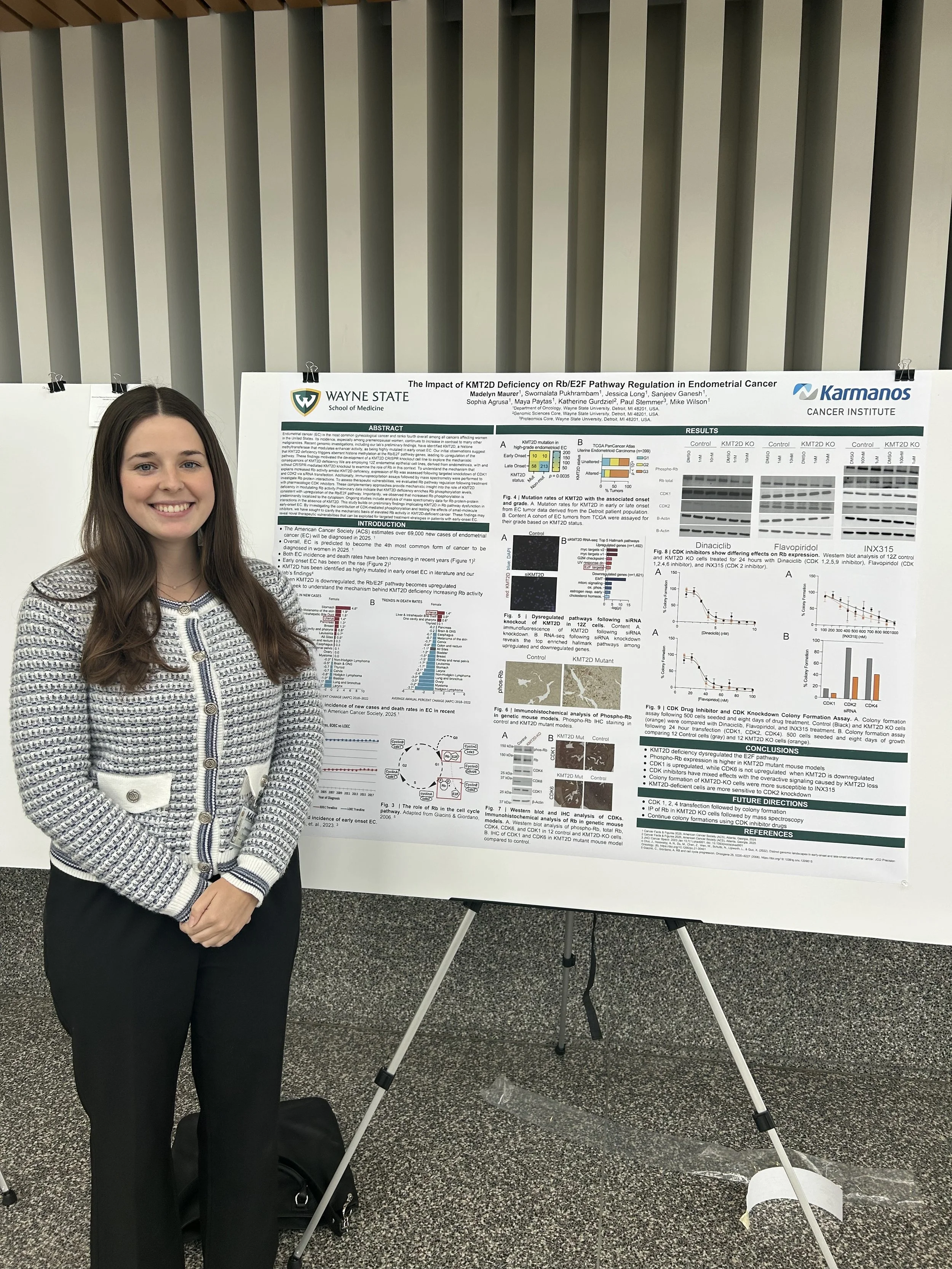 Madelyn Maurer presenting her poster at the 9th Annual Summer Undergraduate Research Symposium at Wayne State University
